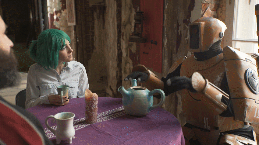 Hi, there you are again! Listen, I'm going to meet Alpha and my robo-friend XJ7Z in Alpha's new cafe. Let's see how everybody is doing!